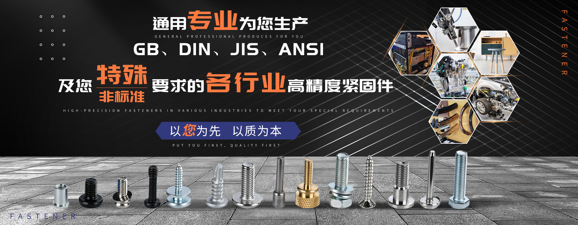中山市通用螺絲制造有限公司成立于1987年,工廠坐落于廣東四小虎之一的中山市,北連廣州,毗鄰港澳。總占地面積14000m 2,足有兩個足球場1998年通過德國萊茵TUV ISO9002認證,于2002年通過TUV ISO9001:2000認證。2008年通過ISO 14000認證。我司主營自攻螺絲、組合螺絲、機械螺絲、防松螺絲等標準和非標準件既可按客戶的要求提交所需的產品,也可為客戶量身定做所需產品。我司擁有專業的產品檢測隊伍和投影分析儀、金相、硬度計(韋氏和洛氏)、扭矩力測試計等完善的檢測設備,為電子、電器、五金塑料、衛浴、家具、機械、汽配等行業提供符合歐盟質量、環保要求的產品2006年,我司自主開發的ERP管理系統,使我們的生產和服務效率得到了極大的提高 經過三十多年地摸爬滾打,依靠眾多新老顧客的支持,通用螺絲逐漸成長為國內知名的緊固件供應商。了解更多 >>